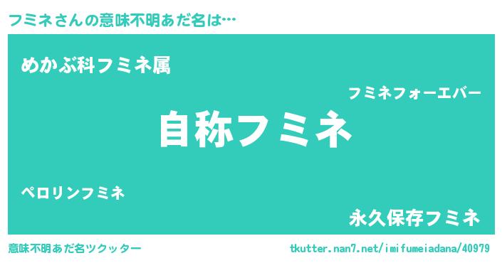 | 自動車の名前っぽいあだ名 | 『フェフーミ』『レクフス』『フクア』 |
