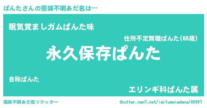 | ヘコむあだ名 | 『ぱんた(震え声)』『ぱんっちょ』 |
