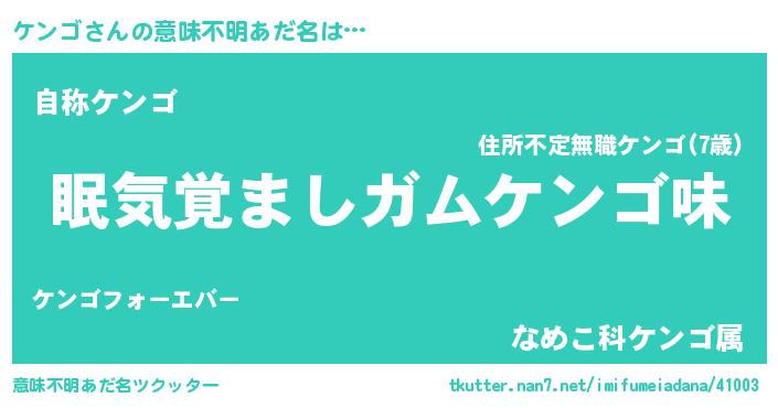 | ヘコむあだ名 | 『つくし』『ケンふぇ~』『ケンを』 |