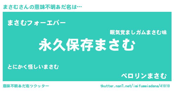 | ファンタジー風あだ名 | 『マサディッシュ』『エターナルマサムー』 |
