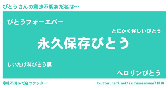 | ヘコむあだ名 | 『びとう(小並感)』『酢こんぶ』 |