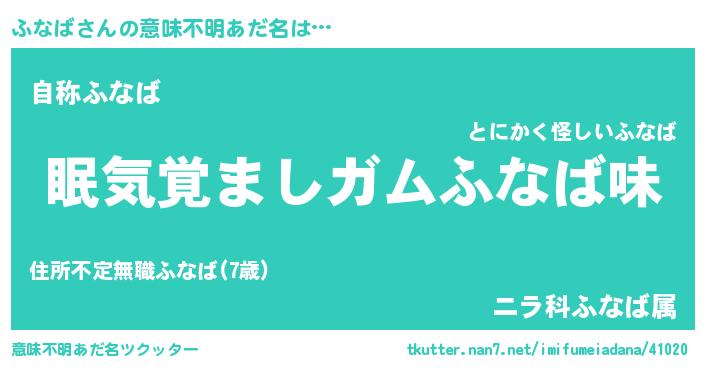 | ヒーロー風カッコイイあだ名 | 『慈愛の使者ふなば』『魔戒騎士フナ』 |
