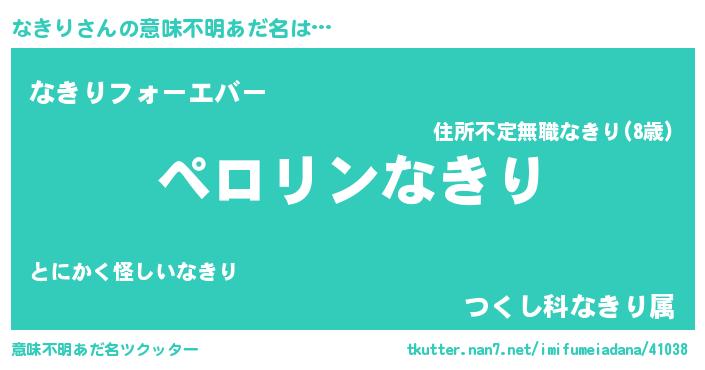 | ヒーロー風カッコイイあだ名 | 『スーパーナキリ』『ウルトラなきりマン』 |