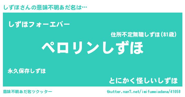 | ファンタジー風あだ名 | 『シズフェル』『エターナルシズホー』 |