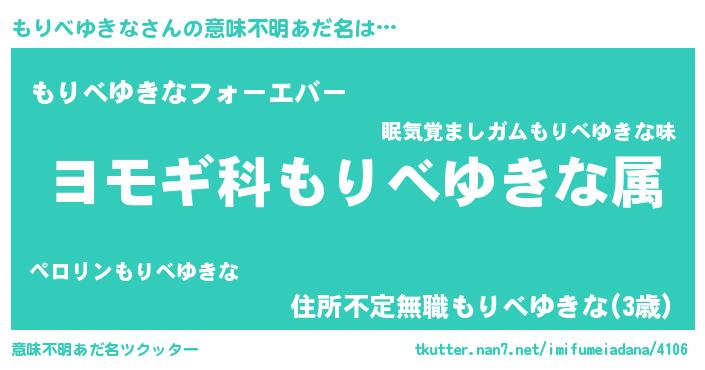 | 男性向けラノベタイトル風あだ名 | 『もりべゆきな~年齢イコール彼女いない歴の魔法使い~』 |