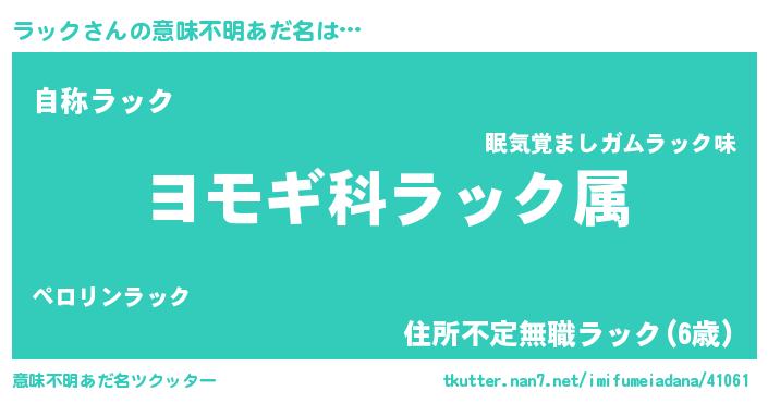| ポケモン風あだ名 | 『ラッゴンZ』『ラッキング』 |