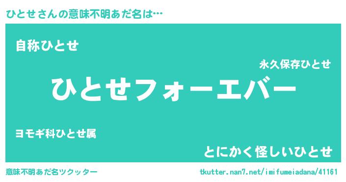 | 欧米人風あだ名 | 『ひとせクリステル』『ウサインひとせ』 |