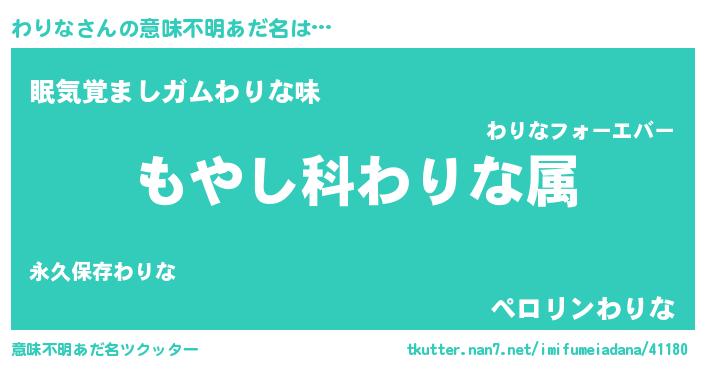 | 男性向けラノベタイトル風あだ名 | 『転生したらわりなだった件』 |