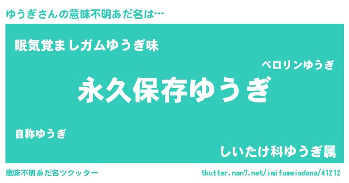 | 男性向けラノベタイトル風あだ名 | 『緋弾のユウギ』『ゆうぎの憂鬱』 |