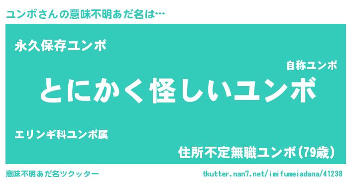| 男性向けラノベタイトル風あだ名 | 『ユンボの嫁は女の子じゃないと思った?』 |