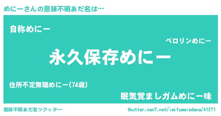| ヘコむあだ名 | 『めにー(小並感)』『めにもー』 |