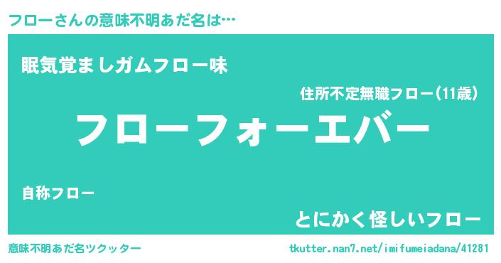 | 女子向けラノベタイトル風あだ名 | 『フローの雑貨屋さん』 |