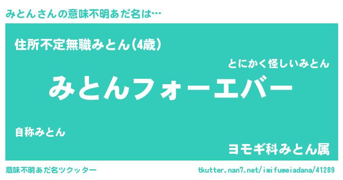 | 欧米人風あだ名 | 『みとん・ステッグマイヤー』 |