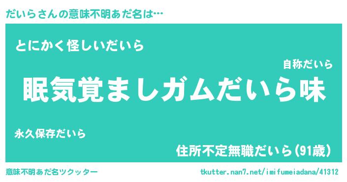| ヘコむあだ名 | 『だいぷりん』『だいら(爆)』『豆乳』 |
