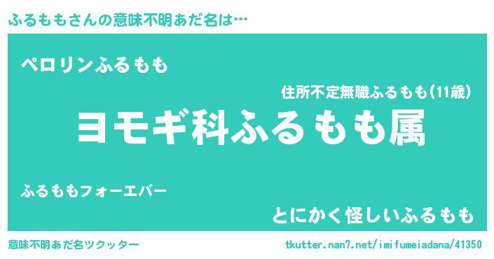 | 胡散臭い通販商品みたいなあだ名 | 『億万長者になれるブレスレット…その名も「ふるもも」』 |