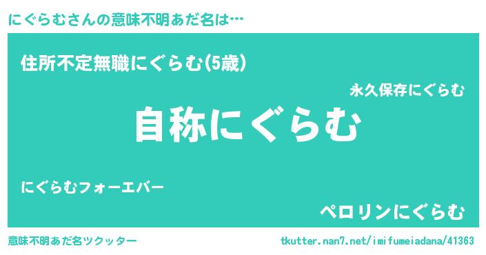 | 男性向けラノベタイトル風あだ名 | 『Re:にぐらむから始める異世界生活』 |