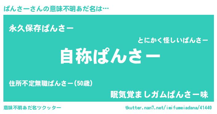 | 男性向けラノベタイトル風あだ名 | 『Re:ぱんさーから始める異世界生活』 |