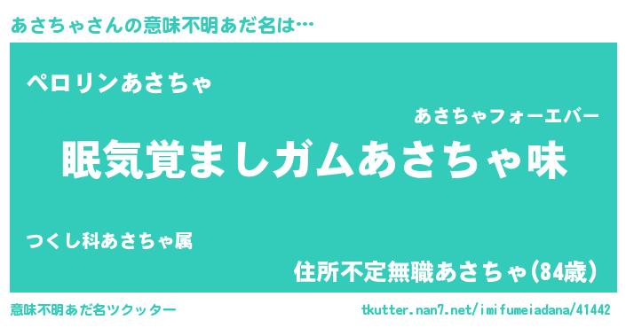| 男性向けラノベタイトル風あだ名 | 『ノーゲーム・ノーアサチャ』 |