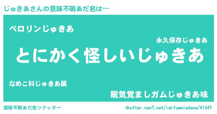 | 女子向けラノベタイトル風あだ名 | 『じゅきあは平凡を望む』 |