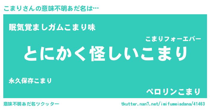 | ヒーロー風カッコイイあだ名 | 『銀牙騎士コマ』『慈愛の使者こまり』 |