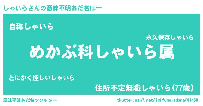 | 欧米人風あだ名 | 『しゃいら・ステッグマイヤー』 |