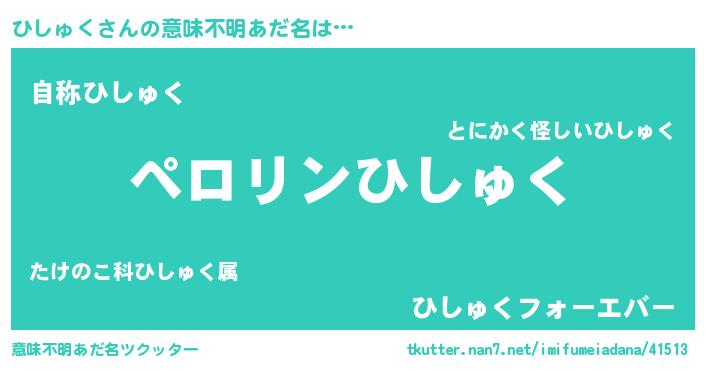 | ヒーロー風カッコイイあだ名 | 『スーパーヒシュク』『究極戦士ヒシュク』 |