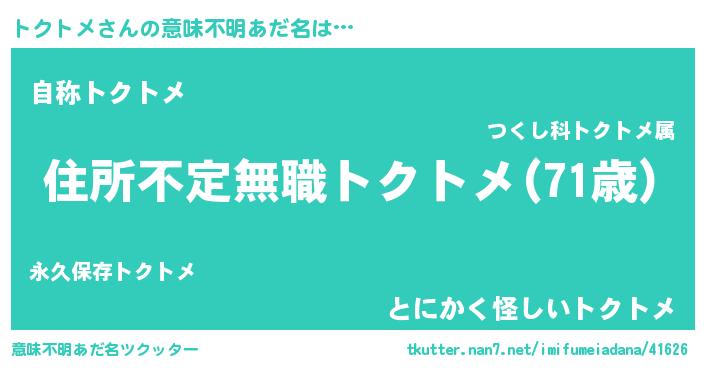 | ポケモン風あだ名 | 『トークイ』『トクセウス』 |
