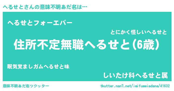 | ポケモン風あだ名 | 『ヘールイ』『ヘルセダネ』 |