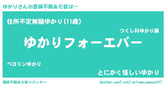 | 欧米人風あだ名 | 『ゆかり・ステッグマイヤー』 |