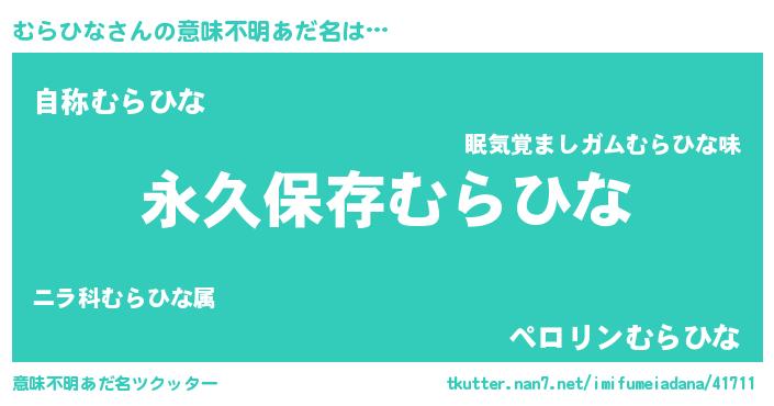 | 男性向けラノベタイトル風あだ名 | 『むらひなという概念が存在しない退屈な世界 』 |