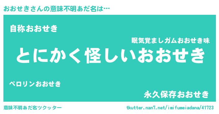 女子向けラノベタイトル風あだ名 | 『おおせきは平凡を望む』 |