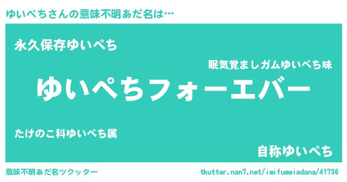| ファンタジー風あだ名 | 『エターナルユイペチー』『ゼユイトゥ』 |