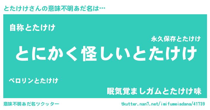 | 女子向けラノベタイトル風あだ名 | 『とたけけの卵を拾いまして』 |