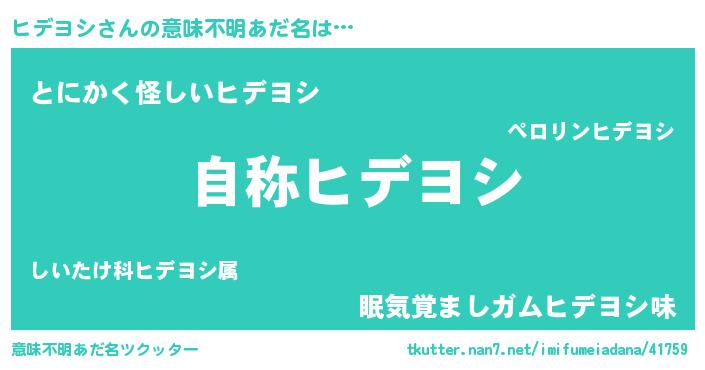 | ヒーロー風カッコイイあだ名 | 『サイバー戦士ヒデヨシ』『魔戒騎士ヒデ』 |