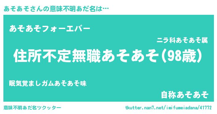 | 胡散臭い通販商品みたいなあだ名 | 『あなたにだけ特別に提供する世界で10本だけ現存している希少なブランデー…その名も「あそあそ」』 |