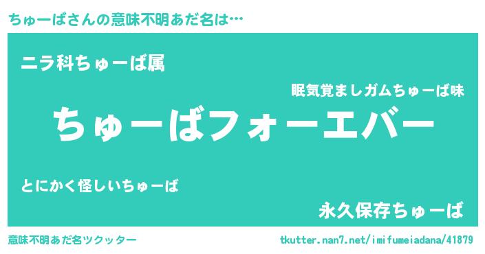 | 女子向けラノベタイトル風あだ名 | 『ちゅーばの雑貨屋さん』 |