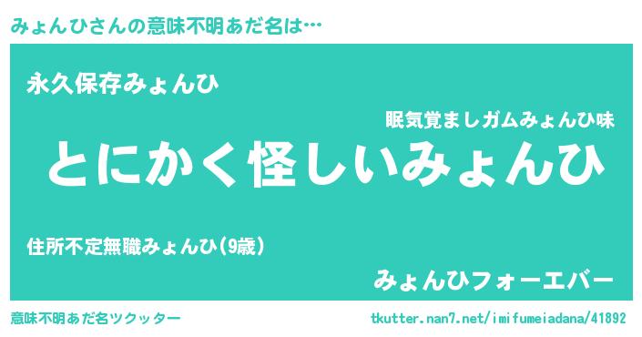 | 胡散臭い通販商品みたいなあだ名 | 『信頼と実績のサプリメント…その名も「みょんひ」』 |