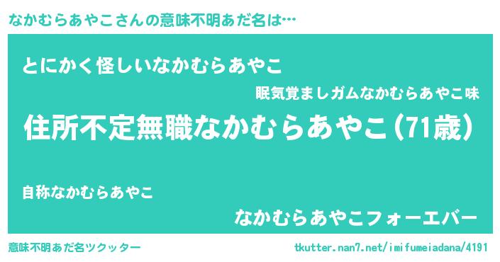 | 伝説のあだ名 | 『解き放たれた遊び人なかむらあやこ』 |