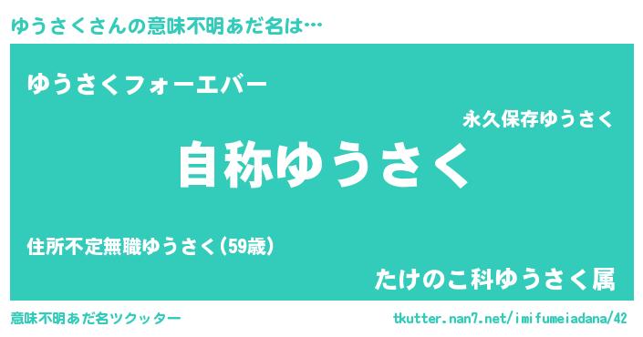 | ファンタジー風あだ名 | 『ゼユウトゥ』『エターナルユウサクー』 |