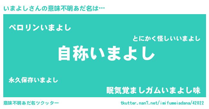 | ヒーロー風カッコイイあだ名 | 『ウルトラ戦士イマヨシ』『幻影騎士イマ』 |