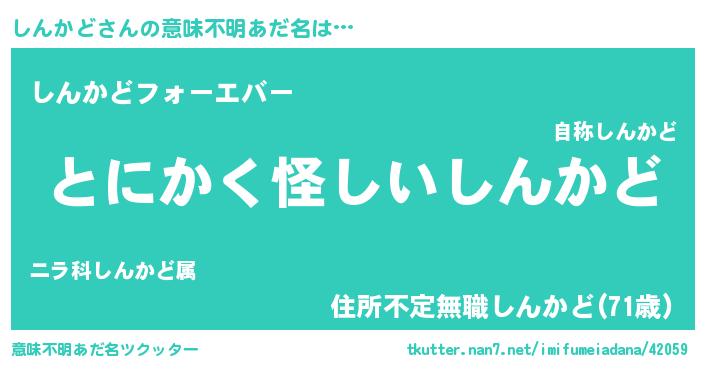 | 欧米人風あだ名 | 『しんかど・ステッグマイヤー』 |