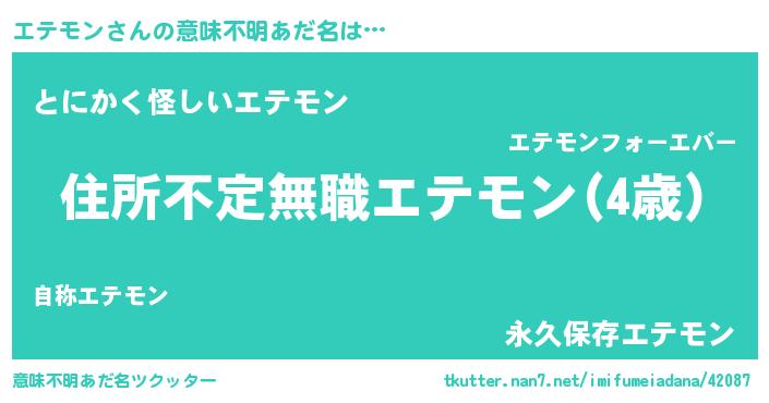 | ヘコむあだ名 | 『エテお』『エテモン(笑)』 |