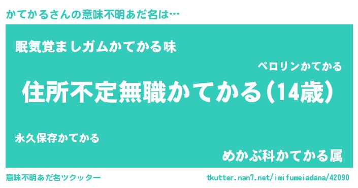 | 男性向けラノベタイトル風あだ名 | 『この素晴らしい世界にかてかるを!』 |