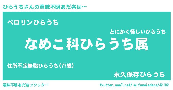 | 男性向けラノベタイトル風あだ名 | 『転生したらひらうちだった件』 |