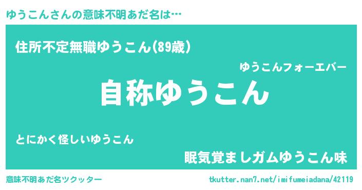 | 男性向けラノベタイトル風あだ名 | 『Re:ゆうこんから始める異世界生活』 |