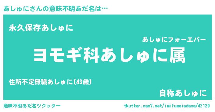 | ヘコむあだ名 | 『あしゅに(笑)』『豆乳』『あしもー』 |