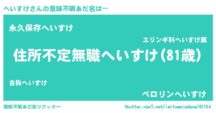 | 男性向けラノベタイトル風あだ名 | 『この素晴らしい世界にへいすけを!』 |