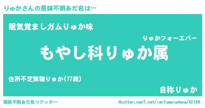 | 男性向けラノベタイトル風あだ名 | 『転生したらりゅかだった件』 |
