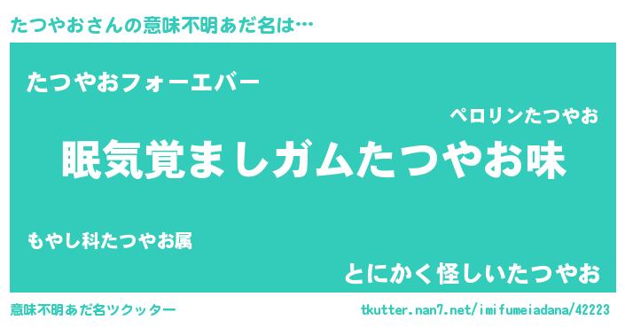 | ファンタジー風あだ名 | 『クインタット』『エターナルタツヤオー』 |