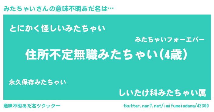 | 男性向けラノベタイトル風あだ名 | 『この素晴らしい世界にみたちゃいを!』 |